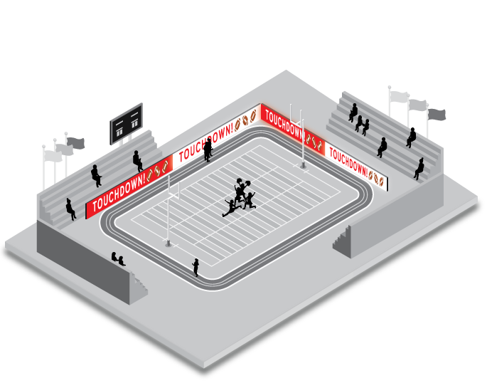 Our large format LED screens provide a high brightness solution ideal for sports stadium / arena perimeter advertising and scoreboard displays.