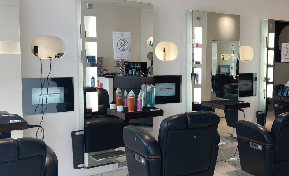 From hair cuts to aesthetic treatments, makeovers to spray tans, we are spending more time in hair and beauty salon. Create a more comfortable environment by integrating Mirror TV’s to keep customers entertained, offering a higher quality experience. Our Mirror TV’s can even be integrated using oversized mirror overlays to mimic the standard stations seen in many hair salons. With our standard Mirror TV screen sizes starting at 32”, we can manufacture multiple smaller screens that can be distributed around the environment to be appreciated from all angles.