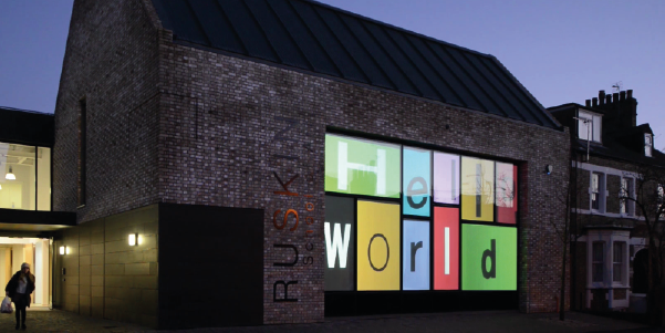 A great example of a world-class art institute benefiting from Switchable technology is the illustrious Ruskin School of Art, who use the product on an install on their outward facing windows. During the day, these large panelled windows are switched to clear, offering passers-by an opportunity to view the students hard at work on their projects or even admire the artwork itself. During night time out of hours, these windows are switched to frosted, adding extra safeguarding for the building so nefarious opportunistic criminals cannot see the potentially expensive art work inside. What makes this installation particularly interesting is their use of the projection functionality by projecting messages on the windows in the dark, ensuring that the building represents the institution’s reputation for artistic excellence even when it is closed. Passers-by are not just able to see the projected content, but due to the size and brightness of the windows-turned-projection screens, they are highly likely to notice it.