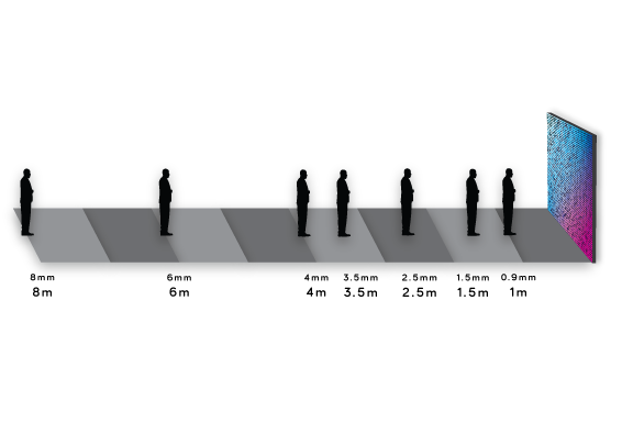 In order to choose the right pixel pitch for an LED screen, you have to consider the viewing distance. For up-close applications the smaller the pixel pitch the better, with our smallest 1.5mm systems suiting viewing distances of a few metres for locations like fashion stores, attractions and museums where the quality can be appreciated. For long-distance applications that wish to spread a message further, our 10mm screens have optimal viewing distances of 20+ metres, ideal for sports facilities, shopping centres and nightlife venues.