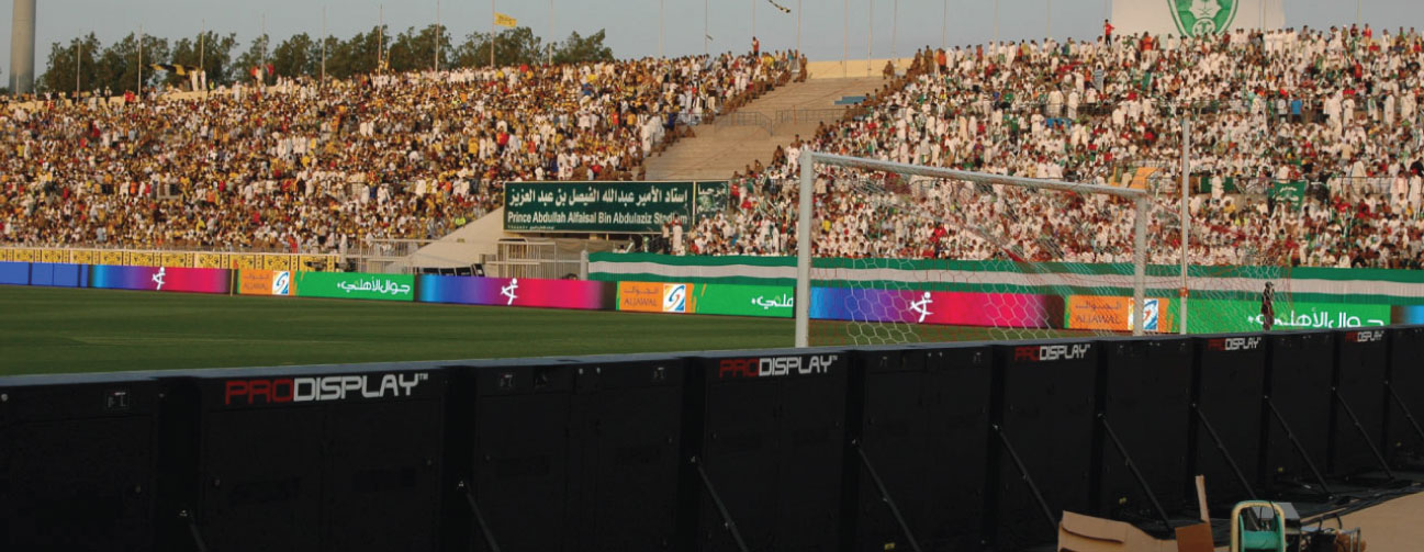 Bringing sports stadiums and arenas into the 21st Century, Pro Display’s LED Perimeter Advertising Systems allow for vivid and exceptionally bright moving images to be displayed as pitch side advertising. An obvious upgrade from the static perimeter systems traditionally seen, these screens offer the opportunity to deploy dynamic and effective advertising in your stadium using the very best LED screen technology on the market, helping you get more from your advertising efforts.