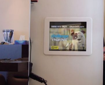 With mirrors acting as a key feature in any beauty environment, why not also use this space for advertising. By using Mirrorvision screens in place of standard mirrors, you can advertise in the area where eyes are naturally drawn without distracting from the mirrors’ primary use. Using black content on these screens maintains reflectivity, giving you the opportunity to make messages and content float on screen. By using oversized Mirror overlays with smaller screens you can maintain optimum mirror quality with the addition of a HD advertising screen, providing a stylish, minimalist display solution.