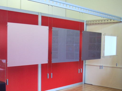 Pro Display supplies a range of cable suspension systems. The standard 1.5mm (0.06”) cable is available as a floor to ceiling fix or with an elegant 100mm (4”) balance weight which makes the screen appear to be floating in mid-air. Optional 3mm (0.12”) cable system for larger screen sizes. These systems are most commonly used with our Switchable Glass Rear Projection Screens to create versatile displays that can practically disappear.
