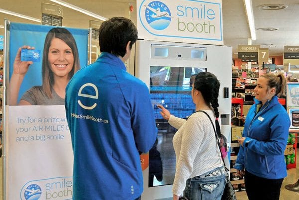 Prizes range from free Air Miles, to VIP concert tickets, to a pair of first class flights anywhere in the world. And, if customers agree, their winning smiles would also appear on Air Miles digital signage billboards in Canada’s major cities.