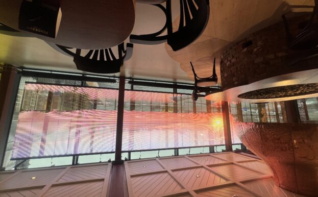 Panoramic Window Display with Transparent LED Screen at Whisky Distillery
