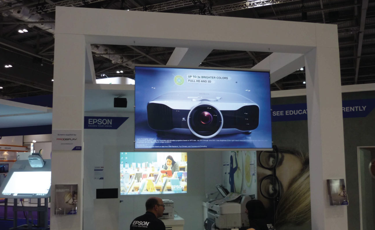 Rear projector technology involves placing the projector behind the screen, shooting towards the audience. This allows the screen to control the light path distributing bright, sharp images into a predefined viewing zone. Pro Display rear projection screen technology creates full colour images, and video brighter than conventional projection screens, even in brightly lit environments.