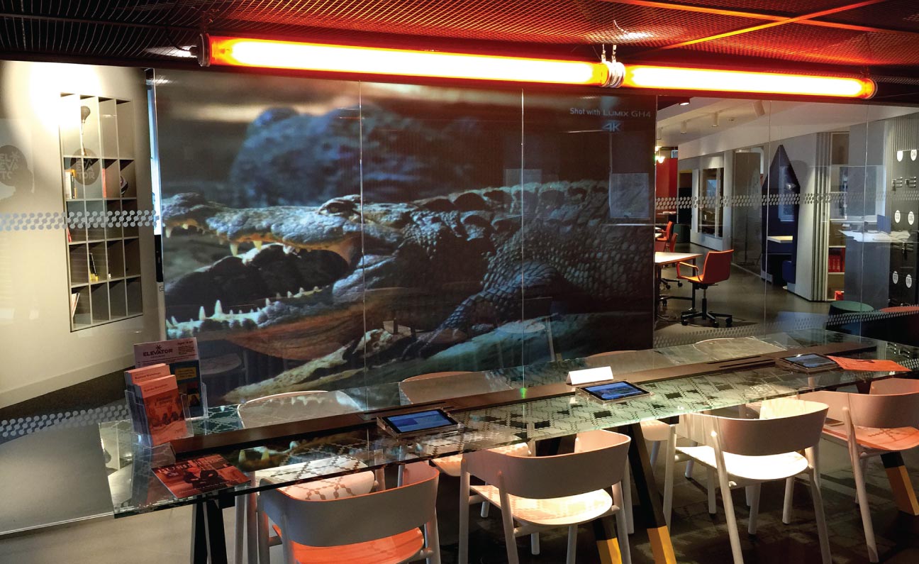 Our specialist digital glass screens can be made in sizes up to 8000 mm x 3000mm and support UST projection.