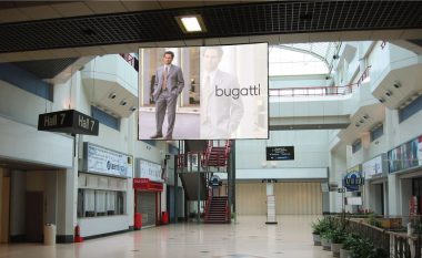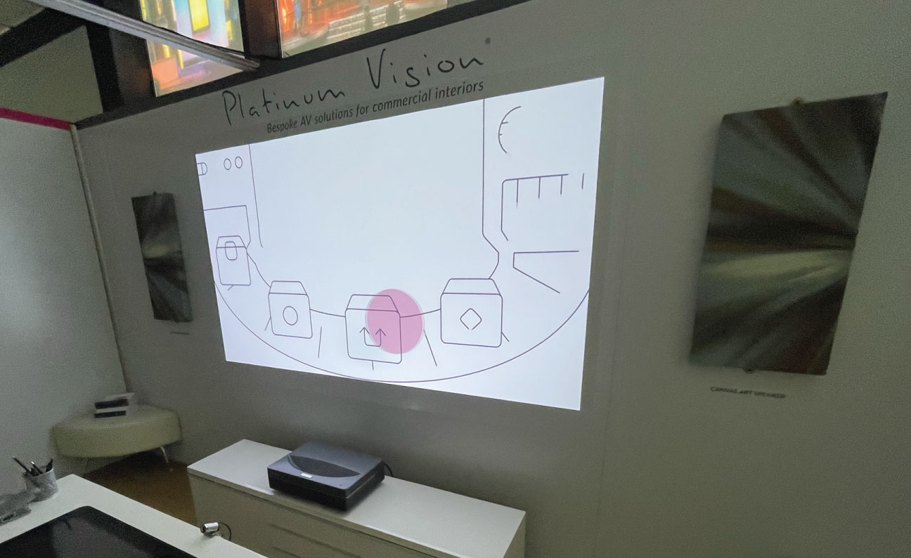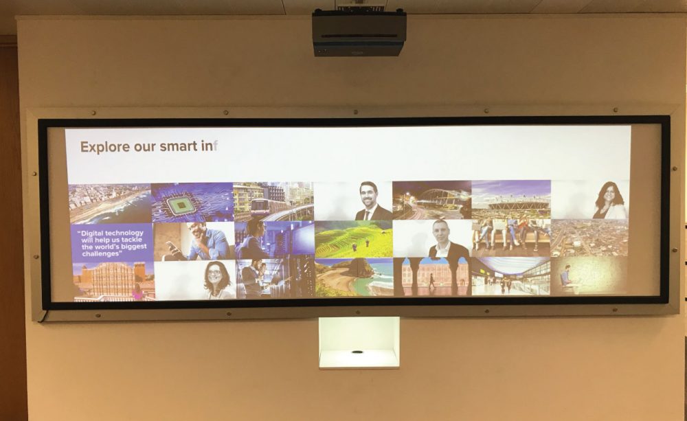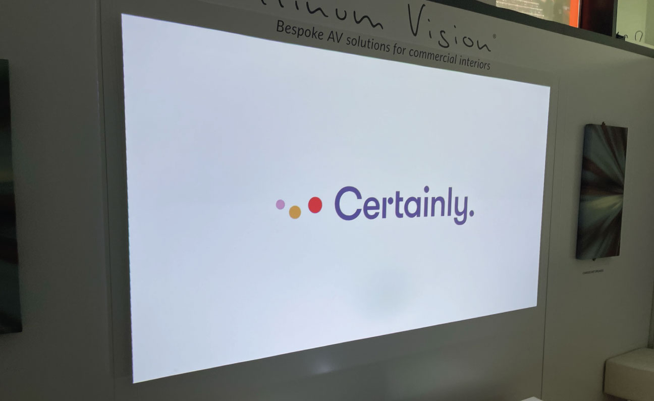 Using a dual sided screen has huge space saving benefits offering two displays for the price of one. Dual sided screens are also more tailored to advertising that uses text, as the message can be appreciated from both sides and not displayed backwards from one side like our dual image projection screen. Our dual sided screen is also manufactured to support short throw and ultra short throw projectors and can be suspended from the ceiling, maximising impact on visitors whilst taking up minimum space.