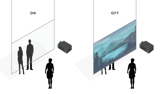 Whilst our standard switchable projection technology utilises rear projection, we can also manufacture Smart Glass Screens for front projection applications that can also be used as a dual image projection screen.