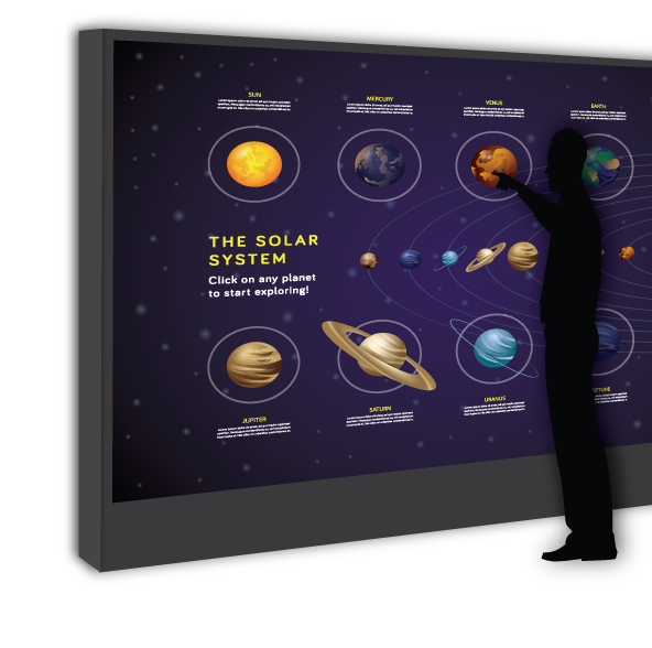 Common applications for our Rear Projection touch technology includes Museums, Exhibitions, Auditoriums, Retail Stores and Boardrooms to name a few.
